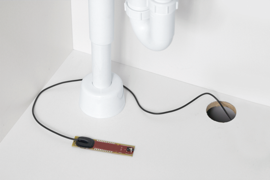 Aber nicht nur Feuer kann einen großen Schaden anrichten, sondern auch Wasser. Deshalb können zusätzlich Wasser-Leckage-Sensoren installiert werden, wo Wasser austreten kann. Die Sensoren schlagen Alarm, sobald sie mit Wasser in Berührung kommen. So können größere Schäden verhindert werden.