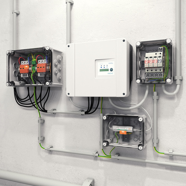 Das isCon®-System ist nicht die einzige Lösung für eine sichere PV-Anlage aus dem OBO-Portfolio. OBO bietet für den Schutz von Photovoltaikanlagen ein komplettes System an, das nahezu alle elektrotechnischen Anforderungen abdeckt. Dazu zählen auch Generatoranschlusskästen mit Blitz- und Überspannungsschutz für PV-Anlagen. Erhältlich sind die Generatoranschlusskästen für bis zu drei Maximum Power Point Tracker (MPPT), ebenso sind Versionen für bis zu vier Strings je MPPT verfügbar. Der Anschluss der Leitungen erfolgt über Klemmen mit Push-In Technologie. Die robusten Gehäuse der Anschlusskästen sind aus wärmeformbeständigem Polycarbonat gefertigt. Mit dem transparenten Deckel haben Besitzer und Betreiber ihre PV-Anlage immer sicher im Blick.